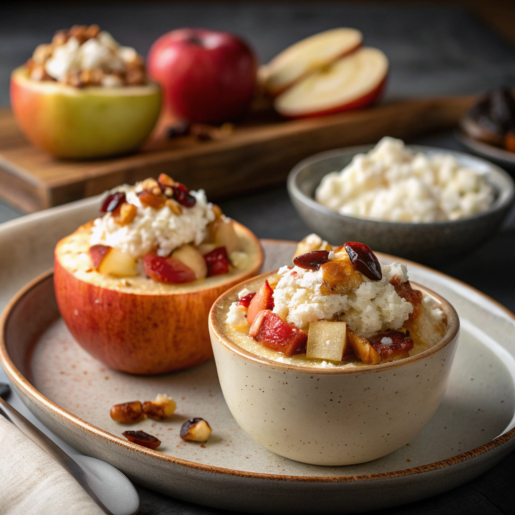 - Assemble Your Bowls: While the apples are still warm, scoop the cottage cheese into one or two serving bowls. Spoon the baked apples generously over the cottage cheese.